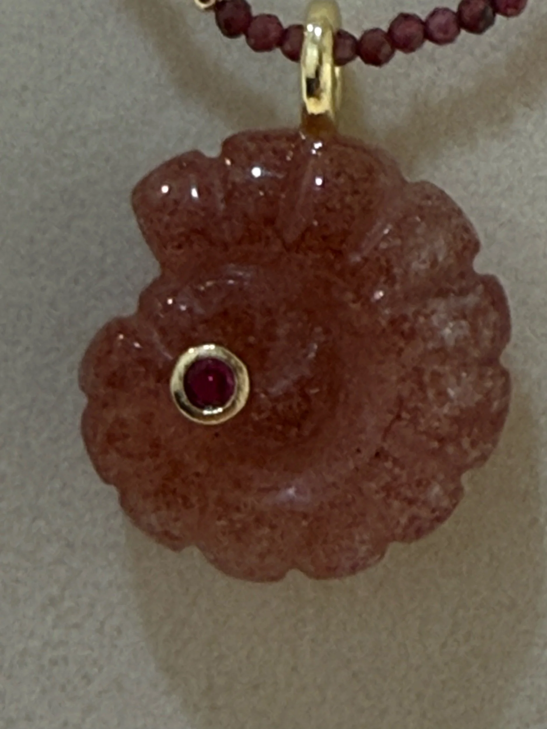 • Carved flower pendant with ruby CZ detail