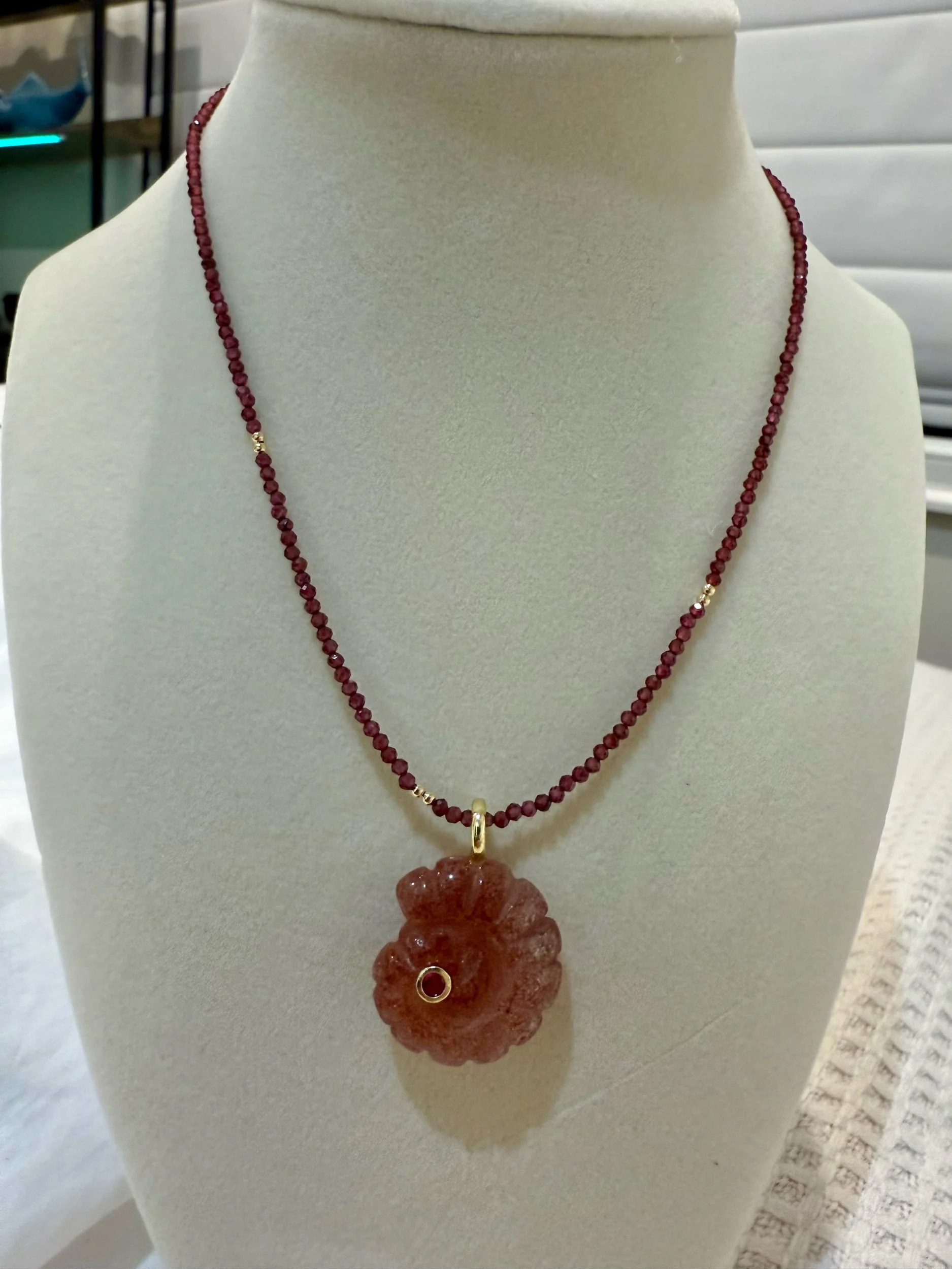 • Garnet necklace • gemstone jewelry • floral pendant